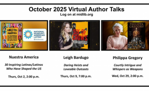 Log on and register to watch the October Virtual Author Talk Series or watch anytime after the live airing. Link: https://libraryc.org/midlib