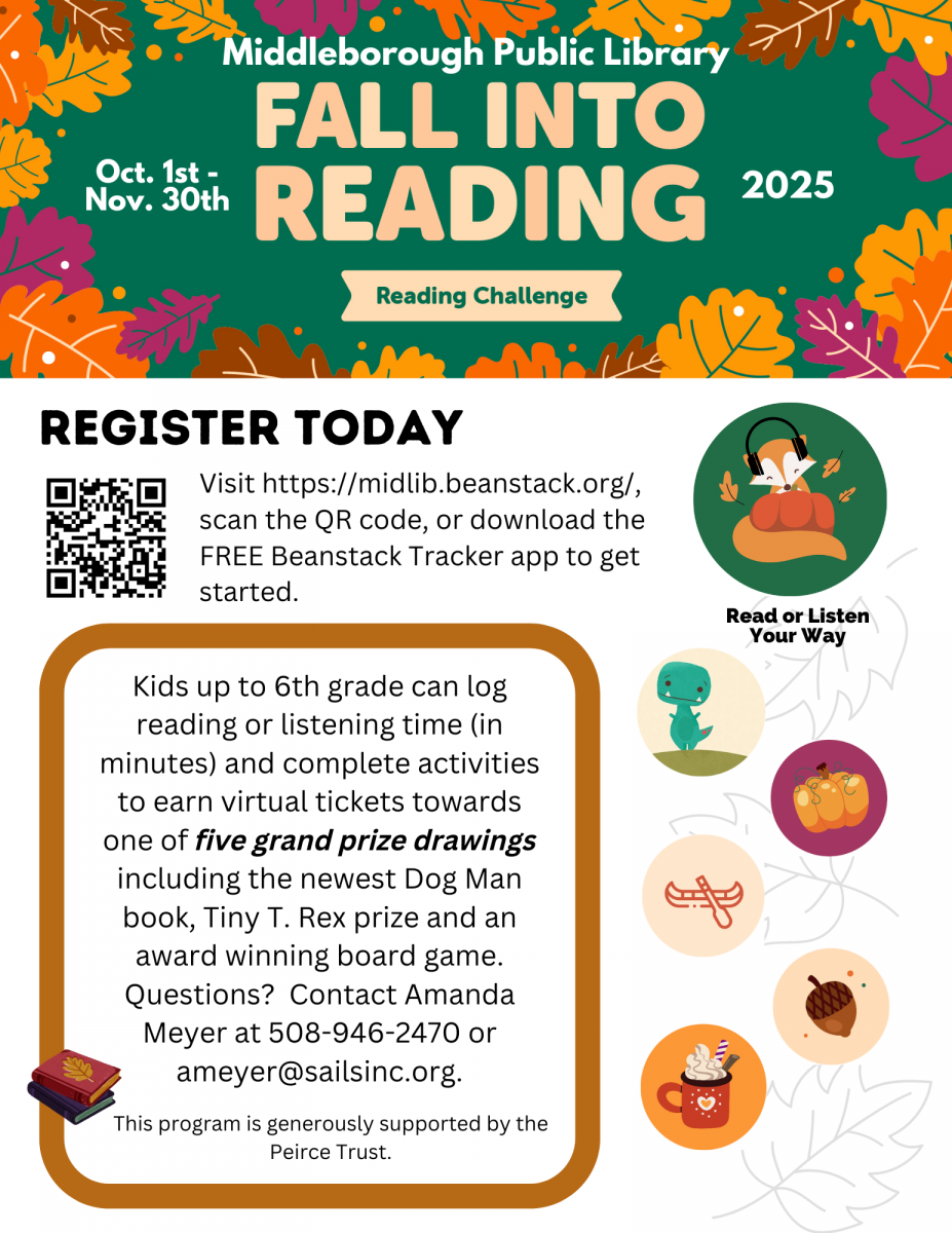 In observance of Columbus Day, the Middleborough Public Library will be closed on Monday, October 13, 2025.